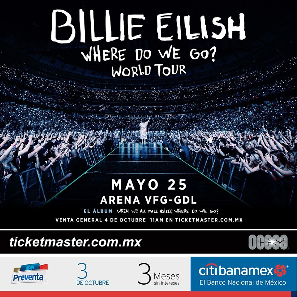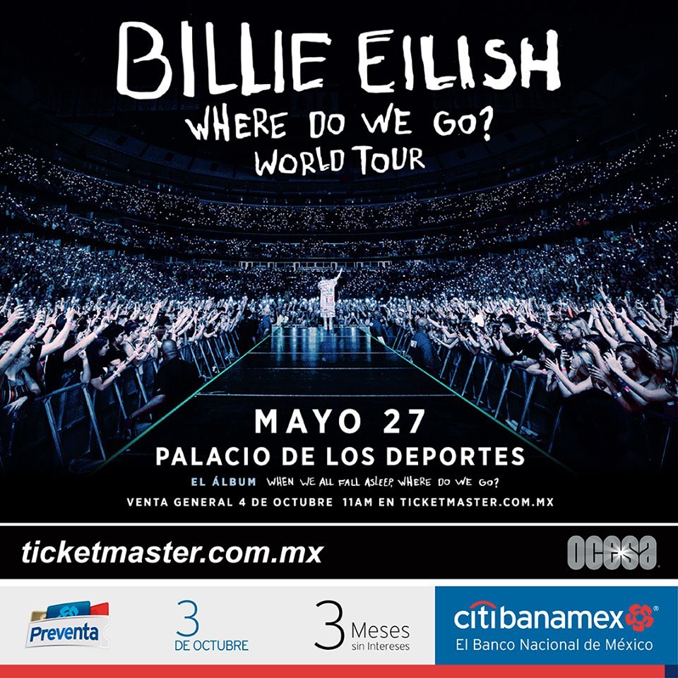 La intérprete de ‘Bad Guy’ ofrecerá dos shows en territorio azteca: el primero será el 25 de Mayo 2020 en la Arena VFG de Guadalajara y después el 27 de Mayo en el Palacio de los Deportes de la Ciudad de México.